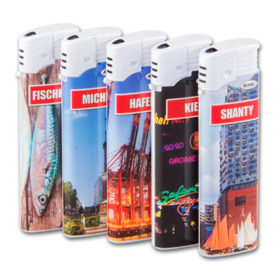 Einwegfeuerzeug Piezo ATOMIC Hamburg rot Steller mit 50 Stück