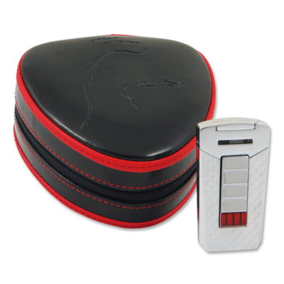 Feuerzeug Piezo/Turbo JEAN CLAUDE Granada Doppelflamme Lack rot/chrom