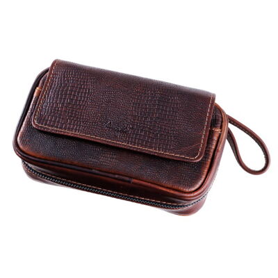 Pfeifentasche 2er ANGELO Leder braun Schlangenoptik
