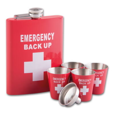 Taschenflasche/Flachmann Set ANGELO mit 4 Bechern und Trichter