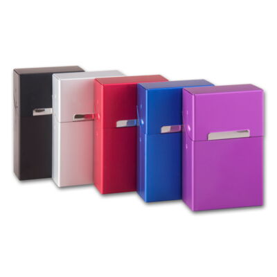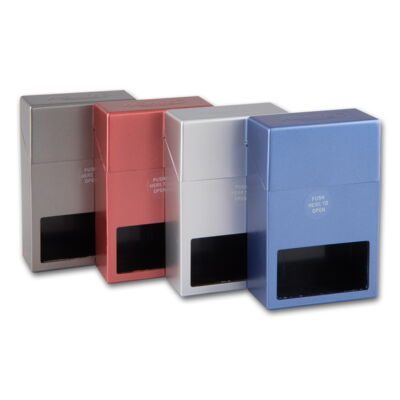 Zigarettenbox Kunststoff Push 100mm Metallfarben sortiert (12)