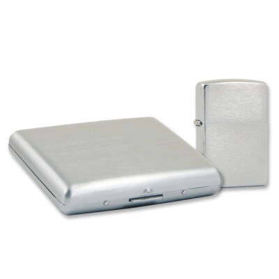 ZIPPO chrom gebürstet mit Zigaretten Etui als Geschenkset