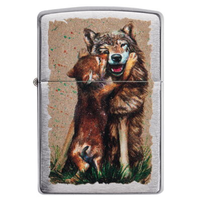 ZIPPO chrom gebürstet Wolf and Pup Design 60004850