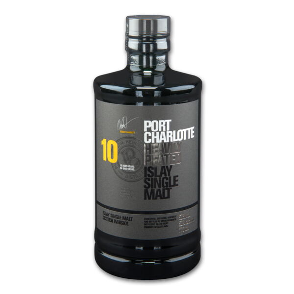 Der Port Charlotte Heavily Peated 10 Jahre lagert zu 65 % in First Fill-, zu 10 % in Refill Ex-Bourbonfässern und zu 25 % in ehemaligen französischen Weinfässern. Trotz seiner Rauchigkeit (40ppm), kommt seine hervorragende Fruchtnote schön zur Geltung. Im Geschmack ist er kraftvoll und dennoch samtig. Zu den holzigen Rauchtönen kommen Kokos, Vanille und Zitrone. Er wird abgefüllt mit 50 % Vol. Hersteller/Inverkehrbringer: Bruichladdich Distillery, Isle of Islay, Argyll Pa497UN, Schottland