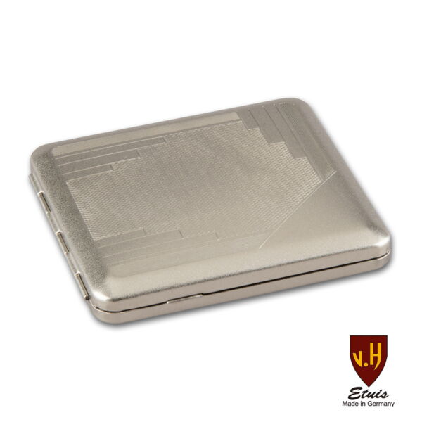 Zigarettenetui Metall VH 18er Nickel/sat. Waffeln und Streifen Gummizu