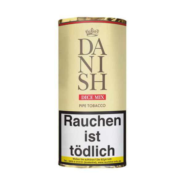 Der Danish Dice Mix besteht aus drei individuellen, handgeblendeten Mischungen. Golden Nuts- gepresster Golden Virginia,Danish Dark Cavendish und Olt Belt Virginia.Jede dieser Mischungen wird mit Nussaroma geflavoured und zwei Monate lang getrennt gelagert um sich dann in einer harmonischen Mischung zu ergänzen.