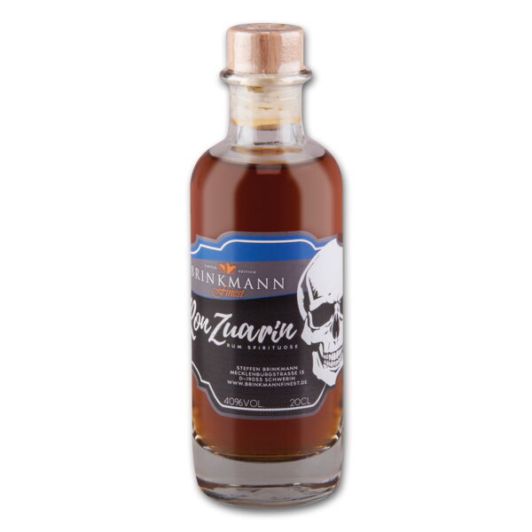 Zum 20. Jubiläum wurde dieser Rum vom Hersteller brinkmannfinest kreiert.Der große Erfolg unseres klassischen Ron Zuarins ist die Motivation, weitere Rumspezialitäten zu entwickeln. Beste Rumqualitäten aus Jamaika und Nicaragua sind die Basis für diesen angenehm süßlichen Rum. Aromen von Vanillie, Walnuss und Orange verwöhnen Nase und Gaumen. Die Süße erinnert an karamellisierten Zucker. Ein absolutes Genusserlebnis für jeden Rumfan und jene, die es werden wollen. - Hersteller/Inverkehrbringer: Steffen Brinkmann, Brinkmannfinest, 19053 Schwerin, Deutschland