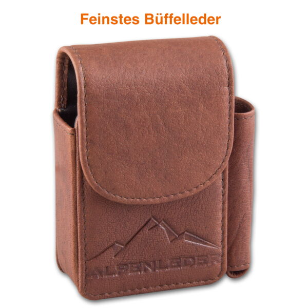 Zigarettenetui ALPENLEDER Zensi Leder braun mit Feuerzeugköcher