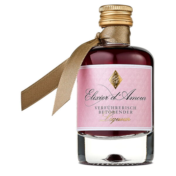 Ein Kirschlikör der besonderen Art - Elixier d´Amour. Es ist nicht einfach nur ein Kirschlikör, Pfirsichlikör, Weinbergpfirsich Likör oder Mandellikör, sondern ein betörendes Elixier - für verführerische Momente. Der Geschmack nach dunkelroten Kirschen wird ergänzt von Rotem Weinbergpfirsich und kräftig-selbstbewusstem Gin. Außerdem Blüten - und Bittermandel-Noten sowie geheimnisvolle Tonkabohne und fein-fruchtige Neroli. Süß und unschuldig auf der Zunge und aufregend wild im Abgang. - Hersteller/Inverkehrbringer: Wajos GmbH, Zur Höhe 1, 56812 Dohr, Deutschland