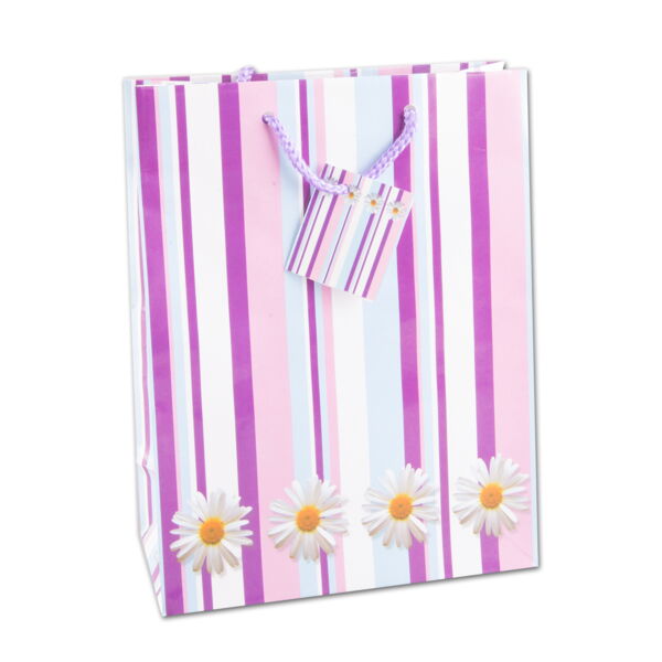 Geschenktüte (12) Gänseblümchen gestreift TBH 8x18x23cm