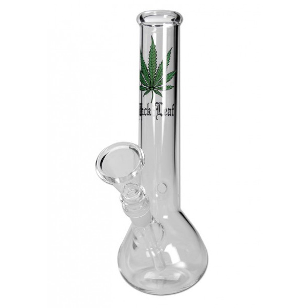 Bong Glas BLACK LEAF Hanfblatt 23 cm Ø 30 mm Schliff 14,5 mm