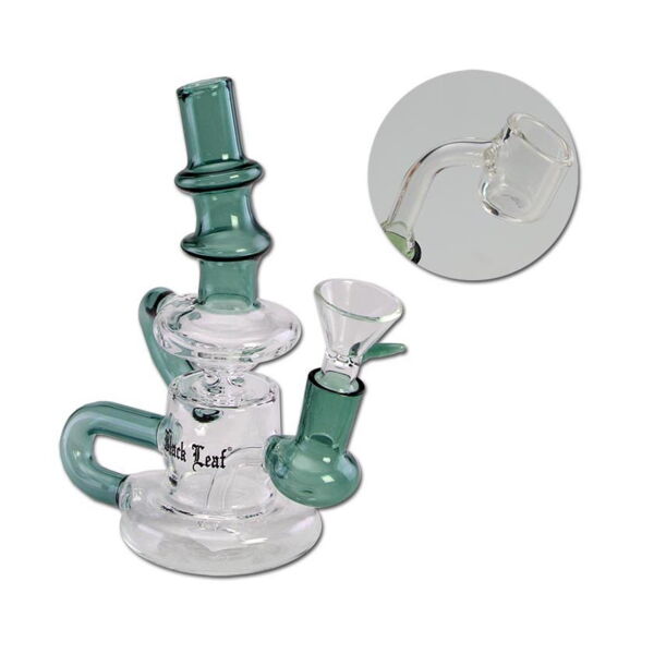 Bong Glas BLACK LEAF Recycler meergrün f Öl + Kräuter 15 cm Ø 68/19mm