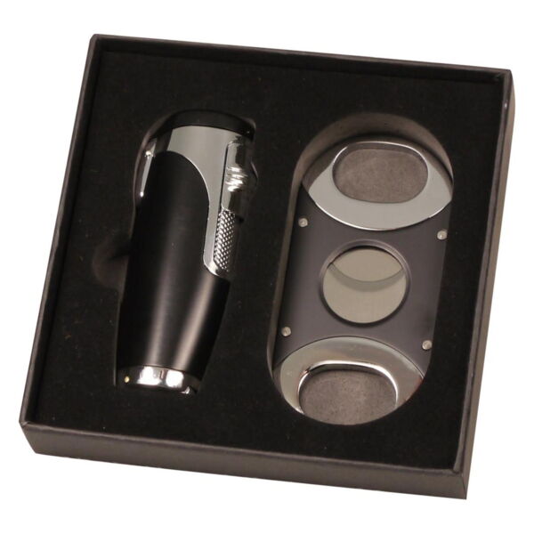 Cigarrenfeuerzeug Jet 3-fach SKY schwarz/chrom m Cigarrenabschneider