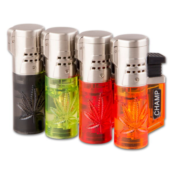 Feuerzeug (12) Jet CHAMP Hanfblatt
