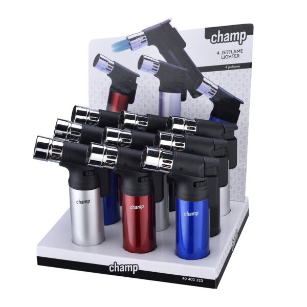 Feuerzeug (9) Jet 4-fach CHAMP Blue Flame 4 Farben sortiert