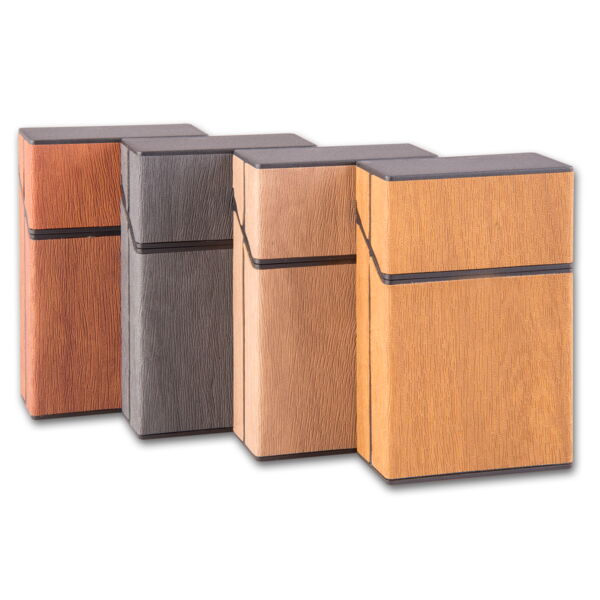 Zigarettenbox Kunststoff CHAMP (12) Holzoptik 4 Farben sortiert
