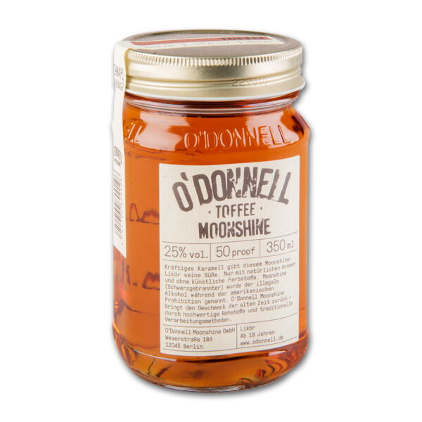 Unser Toffee ist feiner, langsam geschmolzener Zucker, der einen leichten aber vollen Karamell-Geschmack entfaltet. Verfeinert haben wir das Karamell mit einem Schuss unseres besten Schnapses und so einen waschechten Moonshine kreiert, der zu jeder Situation passt. - Hersteller/Inverkehrbringer: O´Donnell Moonshine GmbH, Weserstraße 184, 12045 Berlin, Germany