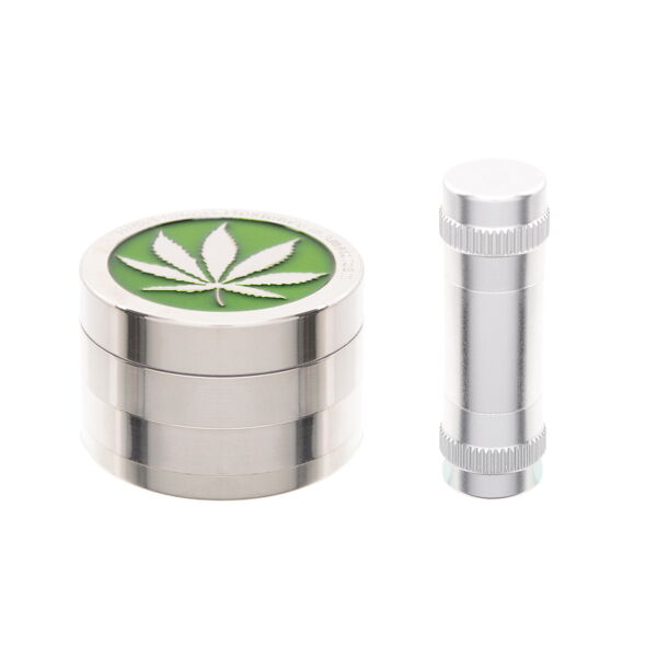 Grinder Metall grün/chrom mit Presser 4-teilig Ø 5 cm