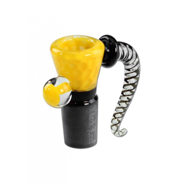 Bong Glaskunstkopf BLACK LEAF Punkte gelb Schliff 18,8 mm Ø 17mm