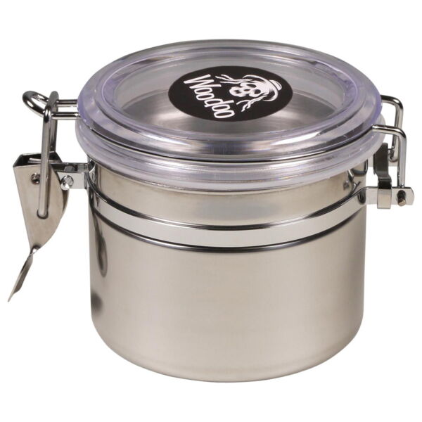 Tabak Vorratsdose WOODOO Edelstahl luftdicht transparenter Deckel