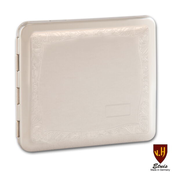 Zigarettenetui Metall VH 18er Nickel/poliert Randdekor u Gravurfeld