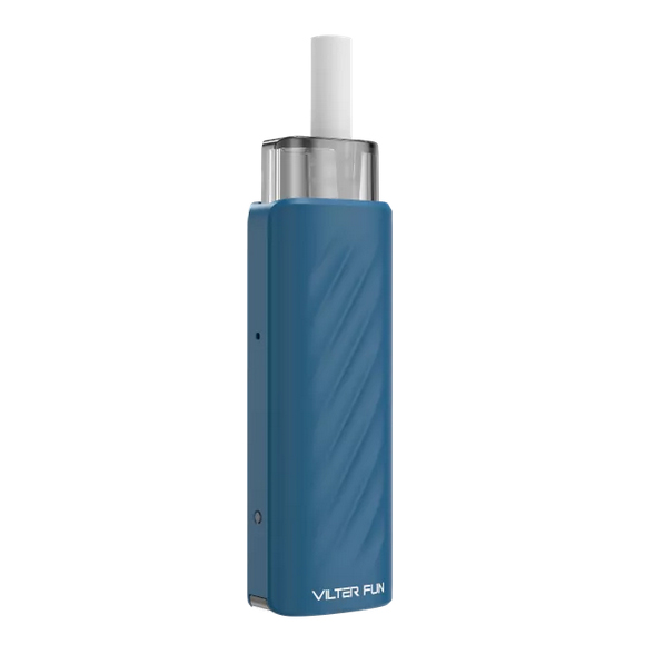Die Aspire Vilter Fun ist eine E-Zigarette im All-In-One Design, welche in der Vilter-Serie die Nachfolge der Modelle Vilter, Vilter S und Vilter Pro antritt. Der Mod kommt mit integriertem Akku mit einer Kapazität von 400 mAh, welcher via Type C-USB nach Herstellerangeben innerhalb von 50 Minuten vollständig aufgeladen werden kann. Das Gerät arbeitet mit einer konstanten Ausgabe der Spannung von 3,7 Volt. Bestandteil des Kits ist der Vilter Pod mit einem Tankvolumen von 2 Millilitern, welcher via Bottom Filling-System über eine Befüllöffnung am Boden der Cartridge befüllt werden kann. In den Pod integriert ist eine Mesh Coil, die mit einem Widerstand von 1,0 Ohm das moderate Dampfen mit Zügen vom Mund zur Lunge unterstützt. Die Vilter Fun kann, wie für alle Modelle der Vilter-Reihe charakteristisch, sowohl mit Filtern, als auch mit einem klassischen POM Drip Tip betrieben werden.