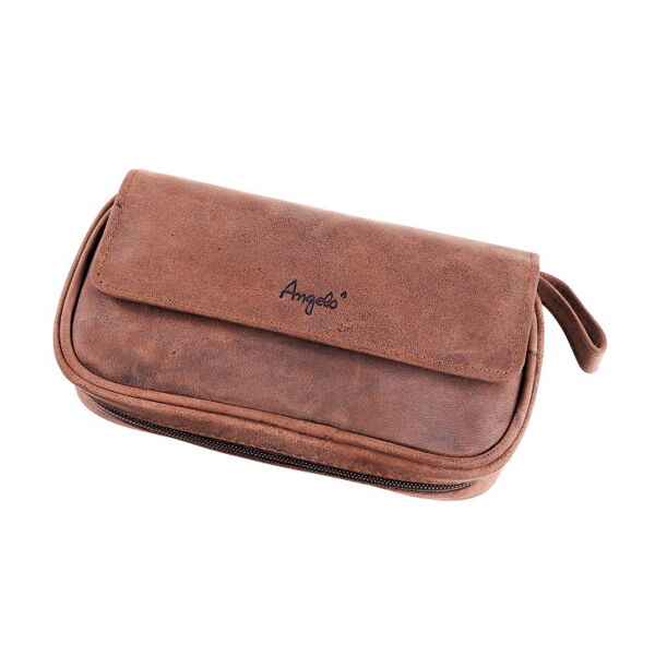Pfeifentasche 2er ANGELO Ziegen-Veloursleder braun