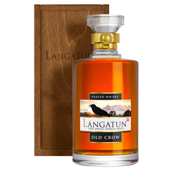 Der Langatun "Old Crow" ein rauchiger, torfiger Whisky. Das Gestenmalz dieses Single Malt Whiskys wird speziell mit Torf geräuchert. Das heisst, dass beim Mälz Vorgang die Gerste mit Rauch von verbranntem Torf getrocknet wird, wobei diese das Rauch Aroma aufnimmt, was dann dem fertigen Whisky die wunderbare Rauchigkeit verleiht. Er gehört zu den ersten Whiskys der Schweiz ja sogar zu den ersten Whiskys des europäischen Festlands welcher mit diesem Verfahren hergestellt wurde. Der Langatun "Old Crow" kommt mit einer schönen Farbe von Amber mit rötlichen Nuancen daher. Angenehme Aromen von süsslichem Torf-Rauch verbinden sich mit Noten von Tabak und einem Hauch von Rotwein. Zurück bleiben wärmende Noten von Tabak, dunkler Schokolade und Erdnussbutter, welche lange nachklingen. Ein Genuss für Liebhaber von feinen torfigen und rauchigen Whiskys. Aroma: Süsser Rauch und Tabak Noten - Geschmack: Rauchiges salziges Karamellbonbon, süsslicher Rauch, ein Hauch von Rotwein - Nachklang: Wärmend, Noten von Tabak & dunkler Schokolade - Hersteller/Inverkehrbringer: Langatun Distillery AG, Eyhalde 10, 4912 Aarwangen, SWITZERLAND