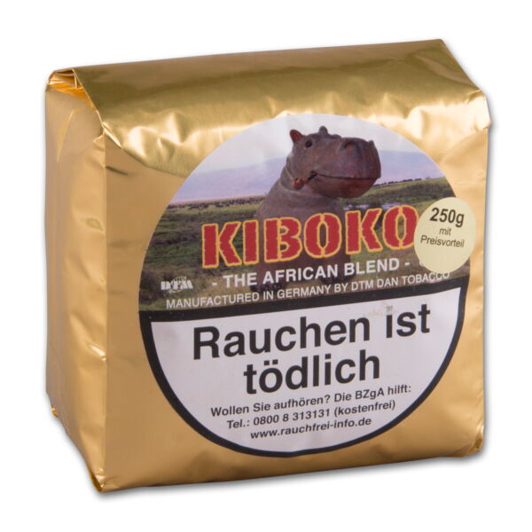 Kiboko ist Swahili und in der ostafrikanischen Sprache der Name für das Flusspferd. Seit Jahren steht ein lächelndes Flusspferd als Sinnbild fülliger Glückseligkeit Pate für diesen Tabak. In Kiboko dominiert ein vollmundiger, doch sanfter Black Cavendish, gemischt mit einer Portion Virginia. Ein eher kurzer Mittelschnitt, verfeinert mit den blumigen Aromen von Kirschblüten und Litchis. Freuen Sie sich auf einen ausgesprochen feinen Genuss mit angenehm freundlicher Duftnote.