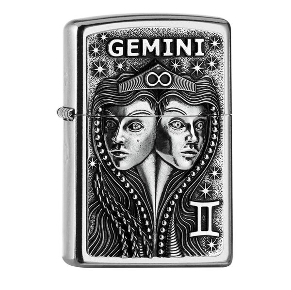 ZIPPO Street chrom Gemini Emblem Tierkreiszeichen 2006503