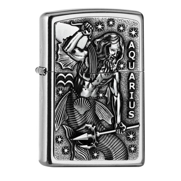 ZIPPO Street chrom Aquarius Emblem Tierkreiszeichen 2006508