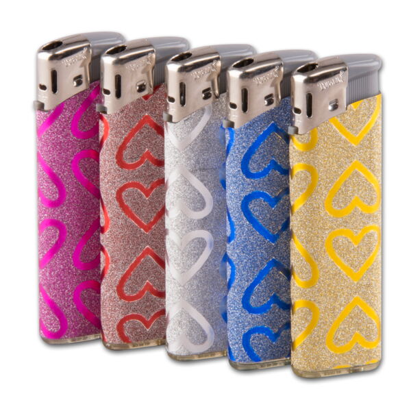 Einwegfeuerzeug Piezo TOBALIQ Slim Heart2 Glitzer Steller mit 50 Stück