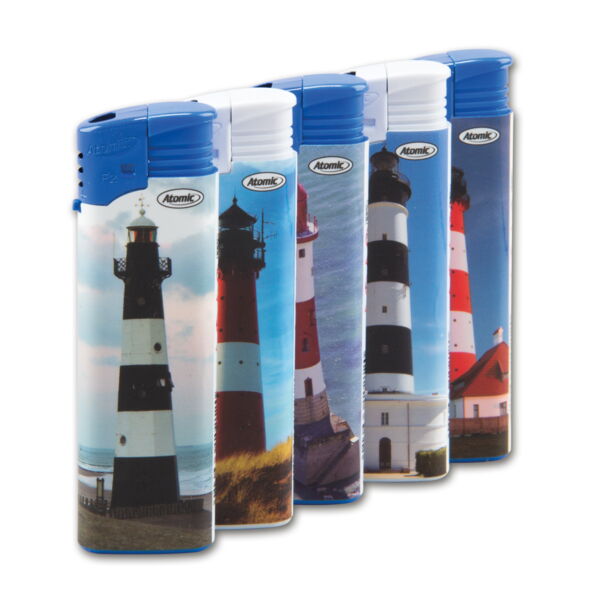 Einwegfeuerzeug Piezo ATOMIC Leuchttürme Steller mit 50 Stück