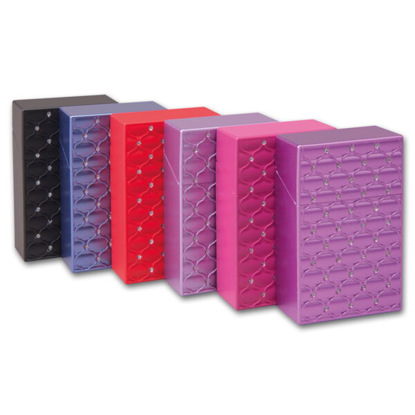 Zigarettenbox Kunststoff (12) metallic sortiert Glitzersteine