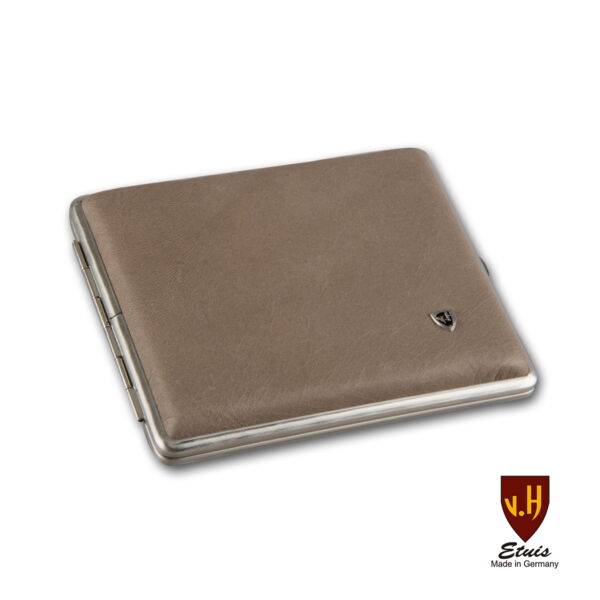 Zigarettenetui Leder VH 24er King Size braun Rahmen chrom mit Gummizug
