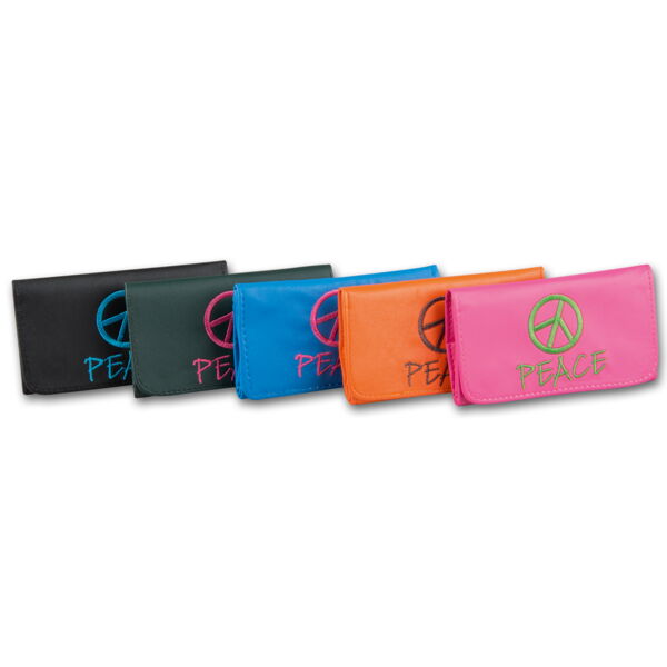 Feinschnitt-Tasche Kunstleder (12) Peace sortiert 13,5 x 7 cm