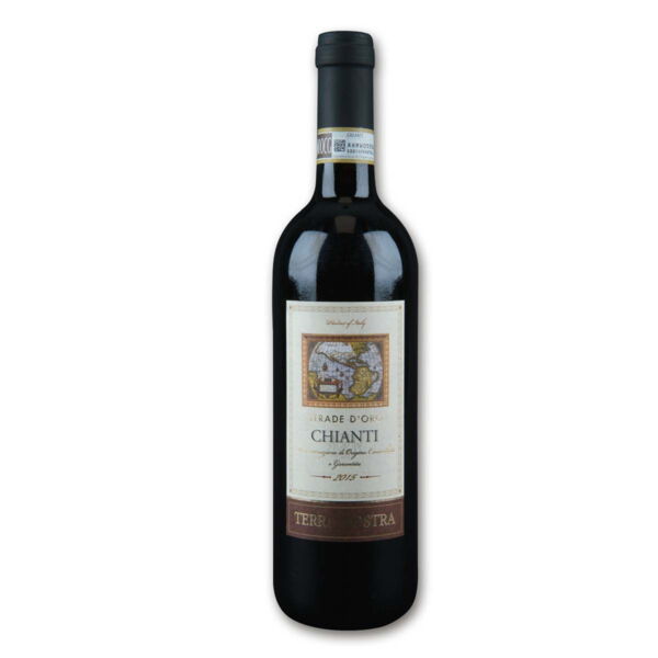 Italien - Trocken - 12 % Vol. - Inhalt: 0,75 l - Das toskanische Weinhaus Castellani ist heute in der fünften Generation im Familienbesitz und hat dank der langjährigen Erfahrung die besten Bedingungen in ihren Weinbergen geschaffen. Bei dem Terra Nostra werden nur vollreife Trauben der Rebsorten Sangiovese, Ciliegiolo und Canaiolo Nero verwendet. Die Gärung erfolgt traditionell in Stahltanks. Der hochwertige Wein entzückt mit einem brilliant leuchtendem Rubinrot. Im Bouquet erkennt man intensive Noten von Kirschen und Veilchen. Sein Geschmack ist weich und harmonisch mit einem sanften Nachgeschmack. Servieren Sie den Terra Nostra am besten zu Pastagerichten, Steaks oder zu Käse. - Allergene: enthält Sulfite - Hersteller/Inverkehrbringer: Castellani Spa, Via del Popolo 90E, IT-56025 Pisa