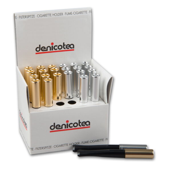 Zigarettenspitze DENICOTEA mit Auswerfer silber 24 Stück