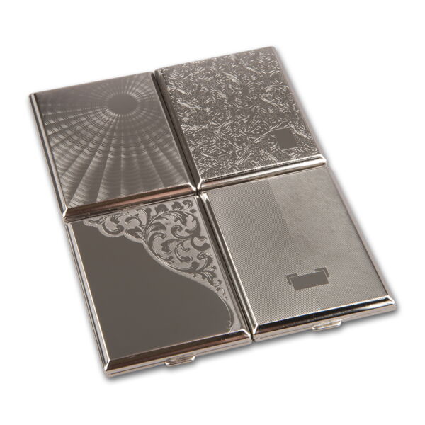 Zigarettenetui Metall 18er ATOMIC chrom 100 mm mit Clip sortiert (8)