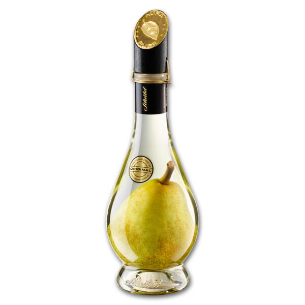 Geruch und Geschmack gehen bei diesem Birnenbrand harmonisch ineinander über. Der Geschmack der ausschließlich aus dem Rhônetal kommenden Früchte wird zunächst wunderbar in der Schwebe gehalten. Die dichte Geschmeidigkeit des Birnengeschmacks sowie dezente Noten von rotem Pfeffer zeigen sich erst im Abgang von besonderer Stärke. Der Birnenbrand ist ein klassischer Digestif. Wie alle anderen Premium-Brände aus dem Hause Scheibel, wird auch dieser Edelbrand über Goldplatten destilliert. Das besondere Highlight ist die in die Flasche eingewachsene Birne. Sie verleiht dem Brand zusätzlichen Geschmack. Sie können die Karaffe immer wieder mit dem Premium Williams-Birnenbrand auffüllen. - Hersteller/Inverkehrbringer: Emil Scheibel Schwarzwald-Brennerei GmbH, Grüner Winkel 32, 77876 Kappelrodeck, Deutschland