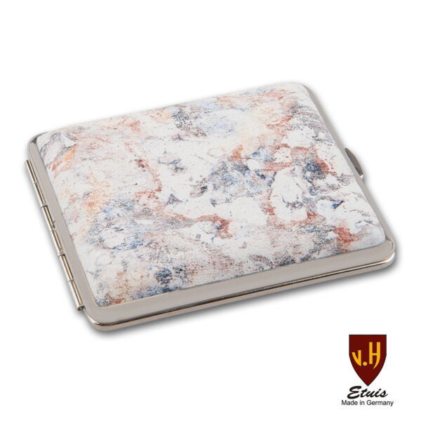 Zigarettenetui Leder VH 18er KS beige Marmor Rahmen Nickel mit Gummizu