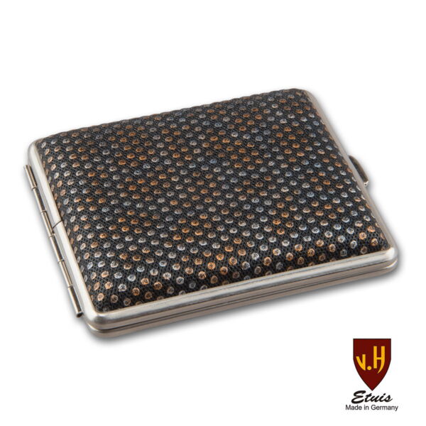 Zigarettenetui Leder VH 18er KS Punktdekor bunt Rahmen Nickel Gummizug