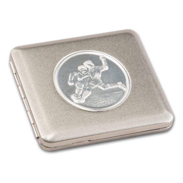 Zigarettenetui Metall 18er KS satiniert Fußball-Plakette mit Gummizug