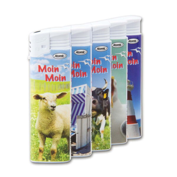 Einwegfeuerzeug Piezo ATOMIC Moin Moin Steller mit 50 Stück