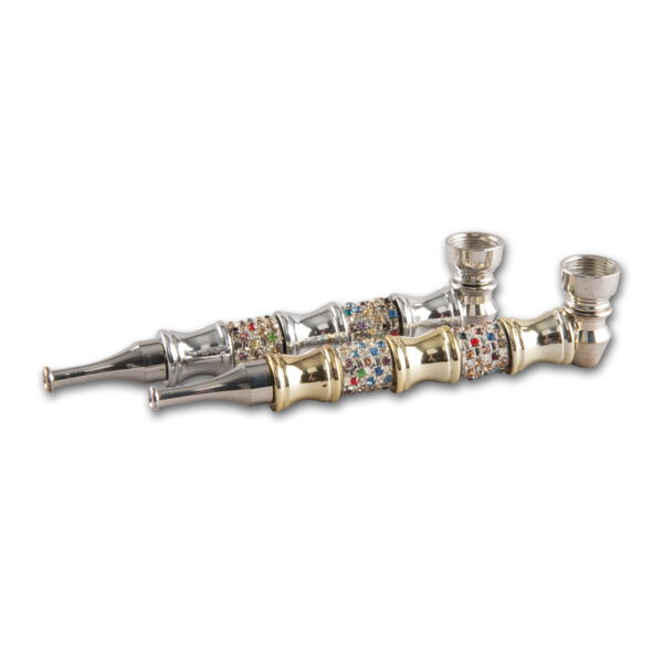 Metallpfeife (12) Streifen mit Steinen Blister farblich sortiert