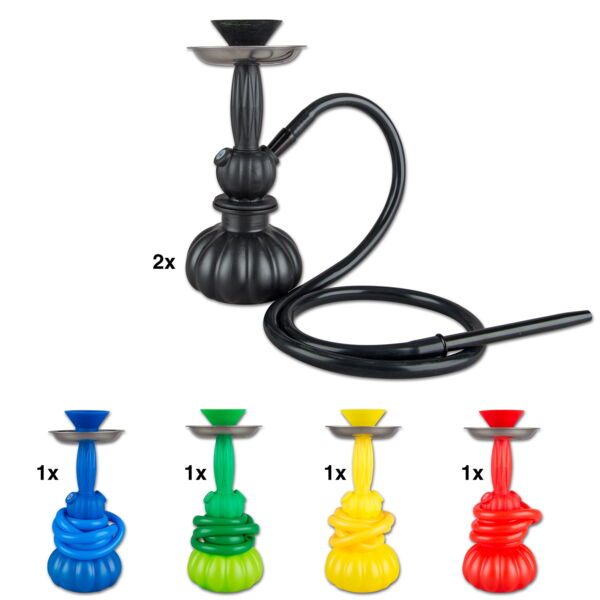 Wasserpfeife(6) Sili 2x rot, je 1x grün, gelb, blau, 1 Anschluss 24 cm